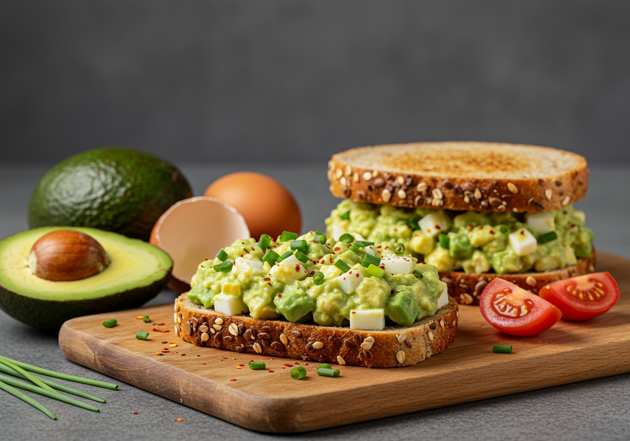 混合鸡蛋与牛油果,加入欧芹、盐、黑胡椒调味